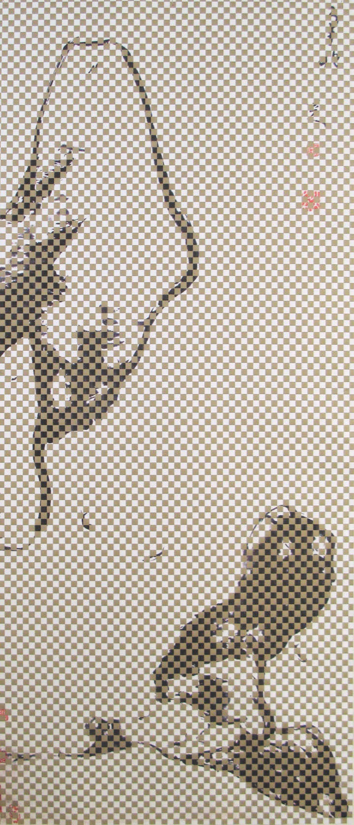 교차 면적(교차 단위)의 가림과 나타남은 과거와 현재의 가림과 나타남으로 구조화되는 계기이며, 올짜진 전체 표면에서는 과거의 흔적으로서의 사진 이미지는 그 고착성에서 해방되고, 현실적 포장지는 그 물질성에서 역시 해방된다. 붓질이 가해진 포장지와의 올짜기 역시 그려진 형태는 그 바탕 표면에서 해방된다,