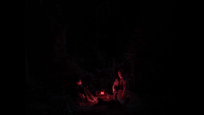 Expérience Ce film est une expérience, bien plus qu’une trame, un déroulé. Nous sommes coupés de nos habitus d’attraction visuelle, de rythmes effrénés, de complexité, d’agitation, de références, de projections, d’entremêlement des temps, des situations. Nous voici enveloppés, comme dans un cocon. Une obscurité et quelques puits de lumière travaillent, qu’ils soient perçants ou d’un rouge effleurant les silhouettes, à une esthétique de l’attention.
