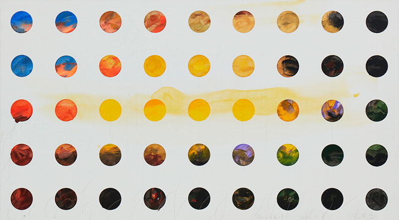 Ce dot Kim Yong-Ik a plus que l’intuition, ce qui constitue la matrice de son œuvre, c’est sans doute la conscience chaque jour un peu plus aiguë de cette ambivalence et de cette ambiguïté des éléments picturaux. Le signe, c’est ce qu’il perçoit n’est pas limitable à la tension entre signifiant et signifié. Il est en tant que signe porteur d’une force d’itération qui dépasse le cadre de la seule répétition formelle générant figure et sens. Il existe dans le « signe » une force autre qui se manifeste dès lors qu’on accepte de reconnaître en lui le fait qu’il est « vide », non signifiant, dépourvu de sens.
