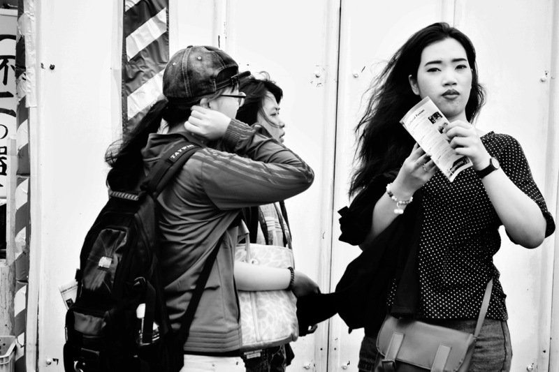 Pour cela j’ai choisi de faire des photos à la hauteur de mes yeux, de ne jamais cadrer en mettant mon œil dans le viseur, pour qu’il ne soit pas masqué par l’appareil… et que je puisse me confronter avec mon regard à celui des gens de la rue, en espérant que certaines ou certains y répondront.