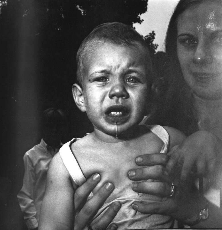 Le petit garçon au regard irradiant est porté par la femme qui le tend vers la photographe Ici il n’y a pas de mise en place, juste le flash qui éclaire de nouveau le visage de l’enfant.