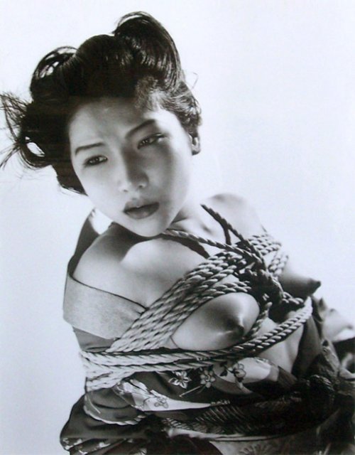 Dans cette photo Araki s’inspire pour sa mise en scène de la tradition du kinbaku, un ligotage érotique, qui prend sa source dans un art martial ancestral le hojôjutsu, dont on se servait pour attacher les mains des prisonniers.