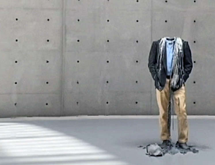 Vide, il ne l’est pas ce désert de béton, car, à cet endroit, se tient un homme. Pas plus que les autres fantôme présents à cet instant, il ne prête attention à ce qui se produit. C’est que si tous les regards sont tournés vers lui, l’homme assigné à résidence dans ce cercle nu, lui ne dispose pas de cet appareil de contrôle qu’est un oeil. Élémentaire, mon cher Watson, puisqu’il n’a pas de tête. Ou plutôt, il n’en a plus. Coupée ? Non ! Fondue !