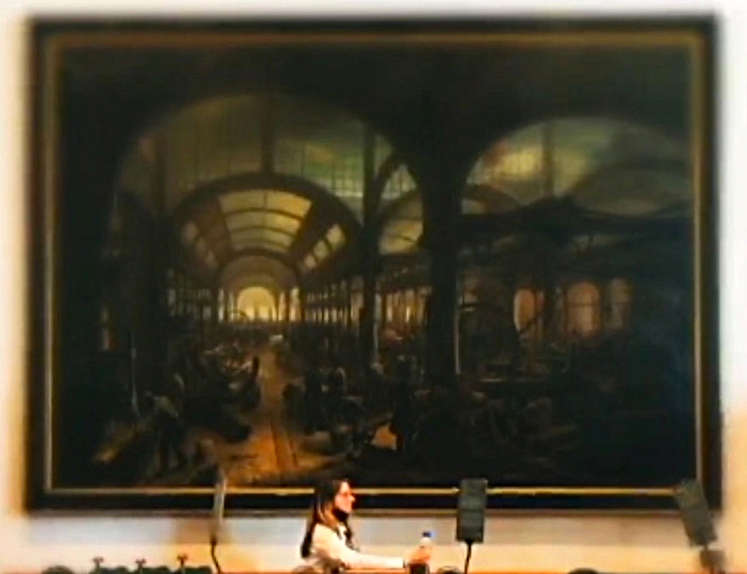 Parce que soudain, là-haut, devant, si près et si loin à la fois, la part sombre de l’invention et du progrès s’étale en une perspective à la fois sombre, terriblement sombre et pourtant, lumineuse, mais seulement dans les lointains, parce que l’invention transformée en attraction et en jeu ne semble plus servir qu’à un délassement sans objet, parce que la main semble réduite alors à faire tourner le rien comme si le moteur n’était plus qu’un moulin à prières sans prières, l’ombre noire de dos de l’homme aux empreintes, tel un voyageur venu d’ailleurs, s’empare de ce vide interstitiel et pourtant infini qui sépare et relie l’attente de la réalisation de la promesse de son accomplissement éternellement différé.