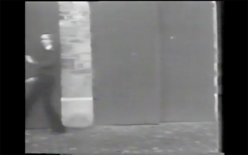Le Panoptique de Jeremy Bentham paraît en 1780, année où Jacques Charles parvient à figer une silhouette à la chambre noire sur papier imbibé de chlorure d’argent. Paraît également, la même année que le Daguerréotype (1839), le Manuel des prisons de Grellet-Wammy. Le bertillonage commence pour sa part en 1879. « Réaliser une photographie, c’est mettre quelqu’un dans un cadre, le soustraire au monde de temps continu et des espaces infinis. Certains scientifiques du XIXe siècle l’ont bien compris en utilisant ce nouveau médium comme un moyen de contrôle, un outil de classification et d’affirmation d’une autorité par l’observation. Ce n’est donc pas un hasard si l’apparition de la photographie est contemporaine de la naissance de la criminologie et de la prison [6]. » Le XIXe siècle voit alors apparaitre conjointement des systèmes disciplinaires, d’enfermement et de surveillance : l’appareil carcéral et l’appareil photographique. Des systèmes hétérotopiques et hétérochroniques, soustraits « au monde de temps continu et des espaces infinis ». Comment les technologies de reproductions héritières de la chambre noire continuent-elles à participer des rouages du système pénal, à l’image de l’asservissement de la photographie à la criminologie et à l’ordre juridique ? C’est plus récemment, en pleine période de contestation sociale et à la veille de la remise en cause du système pénitentiaire initiée par l’Organisation des prisonniers politiques, en 1967, que Sony commercialise le Portapak. Si l’adage accorde à Carole Roussopoulos la deuxième place après Jean-Luc Godard à l’utilisation de la petite caméra portative en 1971, incitée par Jean Genet (à qui on doit le magnifique Chant d’amour), la même année Jacques Lizène réalisait ses tentatives de dressage d’une caméra (Tentative de) et d’échapper à la surveillance d’une caméra (Tentative de) (vidéo noir et blanc, 2’’). Dans la seconde, le Petit Maître liégeois filmé en plan moyen ne parvient pas, malgré ses tentatives à répétition, à sortir du cadre. Prisonnier de l’image, lorsqu’il s’approche du hors champ, la caméra le rattrape systématiquement. « Le cadre photographique n’a pas la même valeur d’enfermement que celui des murs de prison, mais j’ai toujours eu le sentiment qu’en photographiant ces lieux, je parlais aussi de photographie [7]. »