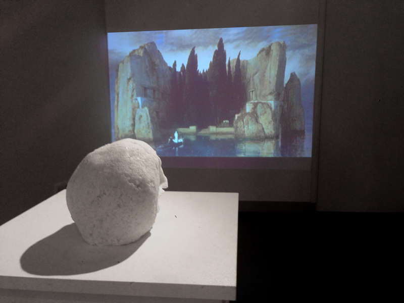 While in the work of Pier Paolo Patti the video is measured with the reasons of communication, in Ciro Vita- le’s L île des Morts the comparison is with painting and its ways of representation and exploration of reality. As the title suggests, the reference is to the famous painting realized in first version by Arnold Bocklin in about 1880, where the issue of the passing away becomes omen for a bigger question that reflects on the transience of life and leads us to confront the greatest fear : the death. The path that leads to such a compa- rison is sprinkled with symbols through which it fully accepts that possibility for the painting to ’represent’, thus superimpose and weld together signifier and signified. The cancellation of any semantic distance between the two poles of language is declined by Vitale in order to alterate the customary diachronicity of the mean video, which is functional to restore the truth of the contemporary drama of immigration : the viewer starts a visual journey from a perspective similar to that which you would have if you were on a boat in the sea ; the island in the distance appears as a promise of the future. Progressively, however, the possibility of a safe landing and a safe refuge decreases, becoming spectrum and then hallucination, disappearing entirely : all hope wrecks and sinks along with the bodies of the many that Vitale commemorates with his sea salt sculpture depicting a skull.