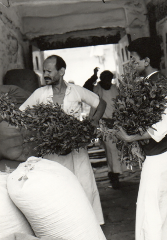 Le temps du Yémen du Nord constituait une variation singulière du temps circulaire du Monde du Sud. Comme dans toute l’Arabie, les petits matins s’étiraient langoureusement, chacun, dès l’éveil, se livrant avec application et mesure à son activité dans les champs, les boutiques et les ateliers. En milieu de matinée, comme une vibration de l’air, comme une onde qui se propagerait jusque dans les ruelles du moindre village, comme un accès de fièvre qui saisirait la population tant des villes que des campagnes, une accélération de la vie. Des camions à ridelles déversaient sur toutes les places, à proximité des débits de thé, sur les marchés, au milieu des étals des maraîchers, pratiquement à la porte des mosquées, de pleines brassées de qat. Des petits groupes d’hommes s’agglutinaient autour des vendeurs, soupesaient les rameaux, discutaient de la pâleur des feuilles, les tâtaient, en picoraient une par ci par là pour en éprouver la tendresse, sortaient de leur poche une liasse de billets et repartaient avec un sac en plastique aux couleurs pastel, vert, rose ou bleu. Une fois tout le monde servi la langueur s’emparait à nouveau du temps. Chacun broutait et mastiquait le qat dans son coin, souvent en compagnie, conversations lentes et calmes en sirotant d’interminables verres de thé, ou seul plus souvent encore, dans la semi-pénombre d’un atelier ou d’une échoppe, exerçant son métier ou son art et tétant sporadiquement à un tuyau de narghilé gros comme un boa constrictor, noir, rouge, vert. Les après-midis se passaient ainsi, hors du temps, à ruminer le qat, la joue enflée par une énorme boule de feuilles hachées menu et la pupille légèrement dilatée, en sculptant un manche de djambia, en martelant un pot de fer blanc ou de cuivre, en disposant des ors dans une vitrine de verre, en dépliant et repliant des soieries ou d’épais tapis, et en invoquant toujours la clémence et la miséricorde d’Allah. Puis, alors que le soir habillait d’orange l’Arabie, que les muezzins enveloppaient dans une gaze mélodique et pieuse les villes, les villages, leurs souks et les hommes, la boule de qat était prestement recrachée, les mains et le visage méthodiquement frottés, et le tapis de prière lestement déployé. C’était cela l’Arabie Heureuse. La vie ne devrait jamais être plus compliquée que cela.