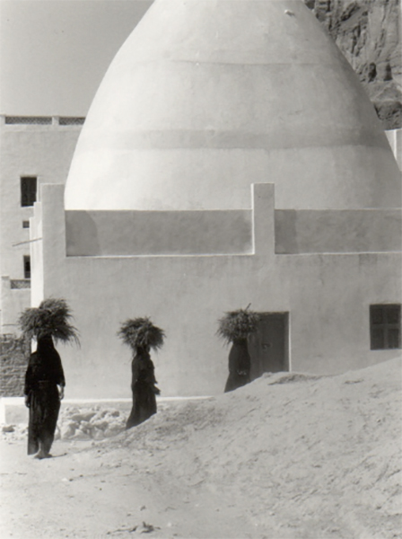 J’ai conservé l’une de ces images collées aux parois de ma caverne crânienne/mémorial, trois femmes en file indienne portant un lourd fardeau de bois posé sur leur tête et dont les formes fines se découpaient sur une belle structure vaguement conique blanchie à la chaux, un grenier à grain. Les femmes du Yémen sont avant tout des travailleuses acharnées. Dans les champs, dans les usines, pour leurs enfants et pour leurs foyers, elles déploient une activité folle. Leur vie est dure et à l’écart des hommes mais pas de leur domination. Et pourtant, quand la guerre ne noie pas leurs yeux de larmes, les femmes du Yémen sont belles et joyeuses.