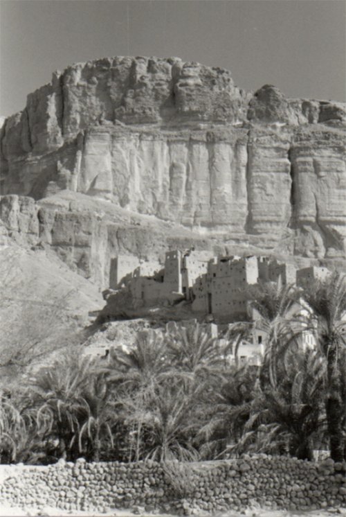 Davantage que désert le Yémen-nord est montagne et parfois, par un soir d’orange, sur un chemin rocailleux en suivant l’ombre noire d’une femme, on tombait sur une petite mosquée et il pouvait arriver que l’on vous invitât à y pénétrer. Là deux ou trois hommes parfaitement silencieux, se confondaient dans la dévotion, s’agenouillant, touchant le sol du front puis se relevant, ou bien assis sur leurs tapis de prière profitaient de la douceur du moment les yeux mi-clos. Le Yémen est montagne et, à proximité de la petite mosquée, je revois une combe merveilleuse, empreinte possible du sabot formidable de l’une de ces montures célestes empruntées par le Prophète lors de ses pérégrinations nocturnes. Sur l’un des pitons la surplombant, un palais-forteresse de pierres massives auquel conduisait un étroit sentier caillouteux. De l’autre côté, une falaise, un à-pic formidable, tombait sur un humble village agglutiné autour d’un minaret fuselé. Axe de méditation sublime. C’était cela l’Arabie. Ces moments étiraient le temps. Ils étaient des points de suspension du temps.