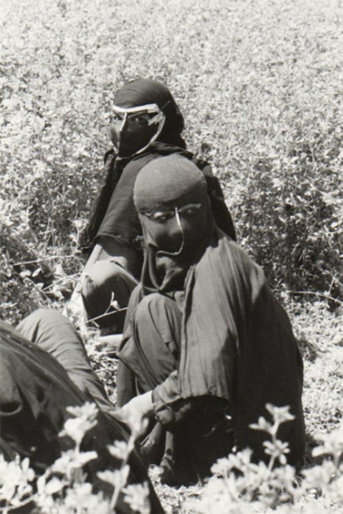 Ainsi je revois un groupe de jeunes femmes qui s’activaient dans un champ et dont on ne pouvait discerner que les yeux rieurs par la fente de curieux masques faits de tissu et de cuir. Yeux entraperçus au travers d’une fente... mais quels yeux ! Un noir abyssal ou parfois un vert d’océan, un vertige ! En Arabie Heureuse les yeux des femmes, quand la guerre ne les noie pas de larmes, sont toujours un vertige. Dans leurs silhouettes, davantage soulignées par les plis du voile que véritablement masquées, il y a un je ne sais quoi d’antique.