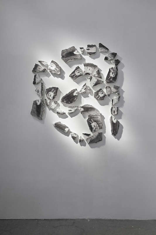 retrait par les bordsune dimension s’effaceles îles sont des isolatsle fond passe en premier préséancesur un plateautouche commestructure évidéeune viscosité autorise le motif chaque île est une montagne chaque île une pressionchaque île un suspendchaque île un atterrissement fausse certitudeson point d’arrivée n’existe pas son existence un douteses sommets tangiblessa superficie dépendante de l’air sa visibilité une accélérationses transparences des touches en retrait une densitéle moment de quitter construction du reliefattirance pointetoujours en réitérationn’existe que par la massevide énorme densitépoids de l’inexistencevient par les bordspoussedévieaccueilleune destructionses inéluctabilitésles îles arriventpar leurs bordsleurs bords génèrent des îlesles îles bougentou ne bougent passont contagieusesune surface est uniquedéplace son videtransporte ses îlesconstruit l’espacehors d’elleles bords avancent dessousprise rapidesaisissementen cours de travail apposition à densité variable ce choix d’une stratesaisirce qui va renvoyerva mettre en mouvement aller chercher rassembler aimanter le plus et le moins d’élémentsc’est à dire pinceà l’endroit de l’empreinteà l’endroit de ce qui fait relief le classement la régularité l’écart du mêmehéraldiquefigureligne de crête au mieuxune distributionune îlerien autourempreinteempruntesoulève prenddéposeposeenlèvedensitédes arrachementsce qu’il restece qui resteignorer l’échelleles points de frictiondes mondes en soihors dereconstruiretouttraverser les pentesdiscerner ce qui est du chemin de la tranchéede la travéedistinguer nervures écoulementspincementsversementplissuresplissementsextraction topologique segmentsvagues épuiséesun mouvement géométrique trembléveinescoulées centralesvoie de dessertefondre c’est aussi remonter brisée à deux ou plusieurs immersionreconstitution potentielleles miettes font partie du voyage aucun reflet les tracesde séparationles flancsle champla sècheresse les excavations reprendre à son compteles parois leur grainremonte où / ous’arrêtent juste avant la mémoire ses dégâtsirréparablesla fonte du langagela souleverenvisagerles répliquesrappelscomme oubliéloignentglissementle paysage fait partiene fait plus partie des corpsrevient dans les corpsl’atteinte de la lumièreun lapsun intervalleune imprégnationencoreles plaies comme ajournementune coquillen’est pas une fautec’est un trou dans le réeldans la mémoireune concrétionpourquoi ici une extrémiténe peut que sécréterconstruire élabore en étoilepar éloignementaimantation contrairedit l’épaisseurce qui rejetteune consistanceles ombres font gagner en luciditéelles se salissentdressent le regardles murs sont des étendues horizontales ce qui s’y graveest un regard une allaiseune anfractuositéun réceptacleles sons vivantsarrêtentla matières’y logents’y loventne la traverse pasen font une membraneincisionou plaieinterversionchaqueles parois dans les parois dans les parois côtoiementpressiongentle pressuregrains attaquentabaissent la lumièrechaque instantsédimentation contrairedes morceauxcontrairement à toute attentesuinte une humidité végétalefibreusevertegraveleusedes boufféesbrisuresdébrisfragmentsdes parcellesdesservies déposéesune cendre est une écorceune consumation de l’intérieurune atteinte des cernes contractiondes lignes par équivalence du point rubanrassemble aspiremorsure des bordsémiettentgrignotagedébordementdu rêve sa consistanceune perteà partir du centrel’oublierdes bords dans les bords repliementpar le dessusdes nuages leur délitementleur déchirureleur effritementleur bordureleur effrangementleur échancrureleur effondrementles surfaces se rétractentune projection se rabatsur elle-mêmebruitpoussièresatténuationcomplémentairecreuserévèle une couleurune autrela renaissancepasse par le mêmele même percementplongementde la surfaceécartedisloqueune horizontalitécoulissecrée sa propre pentele mouvement se sépareau point du miroirdoubleasymétriqueinégalinexistant