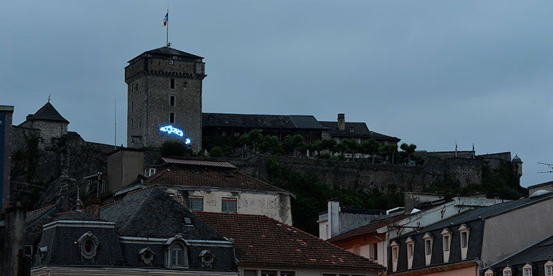 Pascal Pique : Lourdes représente un endroit un peu particulier pour émettre une proposition d’art contemporain. Qui plus est depuis le Château fort – musée Pyrénéen qui surplombe d’un côté les sanctuaires de pèlerinage et de l’autre la ville profane. Quelles sensations avez-vous eues et comment avez-vous pris le problème d’une double intervention à la suite de votre première visite ?