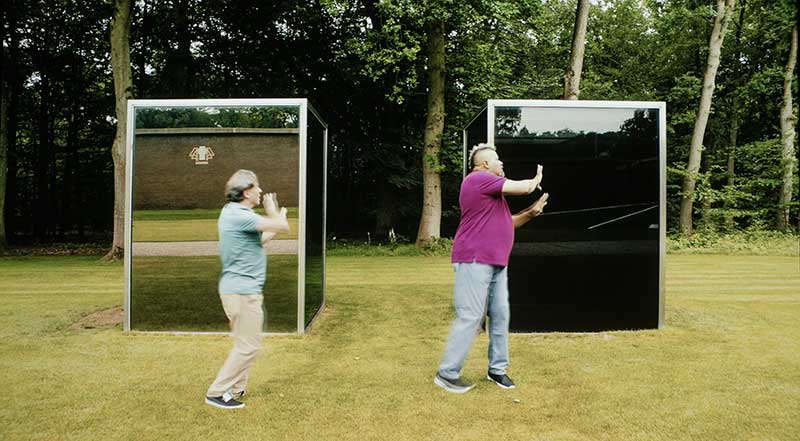 Air Graham, se déroule dans un parc de sculptures contemporaines, les jardins du Kröller–Müller Museum. Deux mimes s’adonnent à une déambulation autour des deux pavillons, ils les agrandissent et matérialisent ainsi l’influence de Dan Graham, une référence majeure pour l’art après les années 60.