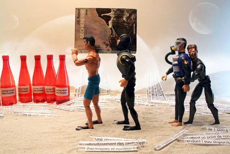Cette façon de puiser dans cette réserve de figurines dérisoires, clonées et dociles interroge insidieusement et au-delà du détournement, nos habitudes de pensée, notre perception de l’humain, de son devenir et notre capacité de désadaptation.