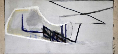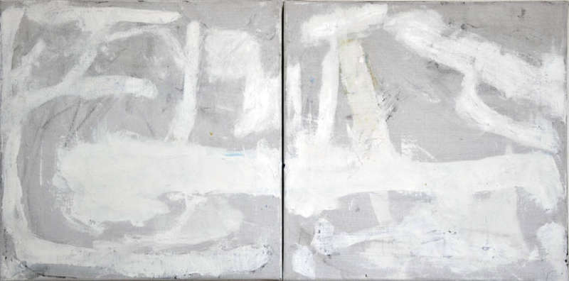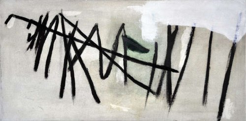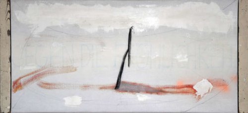 Mais il se trouve que Wolfgang Seierl ne les fait pas apparaître sur le devant de la toile. Ces mots semblent à la fois recouverts d’une couche claire translucide puis de couleurs sombres souvent et de traits qui forment comme autant de tentatives de ratures d’une voix retenue au loin.