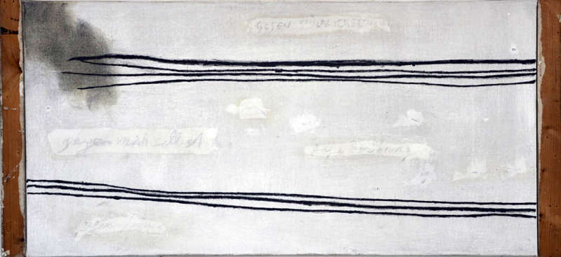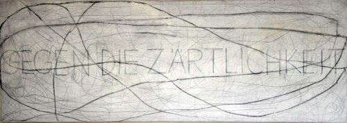 Contre la tendresse, ces mots ainsi recouverts et niés semblent parler la langue d’un monde quasi policier peuplé d’injonctions mortelles et d’ordres absurdes. Mais recouverts par la main de Wolfgang Seierl, recouverts par le geste d’un peintre, il disent aussi la présence indéracinable de cette même tendresse, celle qui porte tout geste créateur, fut-il le plus violent, le plus critique, le plus révolté. Car pour dire non au monde tel qu’il est, il faut intimement avoir dit oui à l’autre forme du monde, celle qui gît là, tout près, juste sous la surface des choses et que les écartèlements entre les couches de mots, de signes, de traits et de peinture laissent entrevoir partout dans les tableaux de Wolfgang Seierl.
