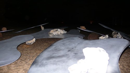 B : En dehors des représentations pariétales et autres, je m’intéresse beaucoup aux premiers outils. C’est-à-dire au premier outillage de forme intelligente constitué de matériaux naturels. Comme les silex, les grés ou les jaspes. Ces premiers matériaux pré industriels ont aidé à l’émergence de nos modes de vies. A partir de cette lecture, l’échelle des inventions des outillages à partir du bronze, du fer, du plomb et de l’étain, ont donné des matériaux plus affinés qui nous ont permis d’accéder à l’inaccessible. C’est-à-dire à l’espace. La préhistoire est pour un moi un terrain constitué de différents matériaux vierges qui sont comme les sédiments, ou la matrice du parcours de l’humanité. Du parcours géographique de l’humanité.
