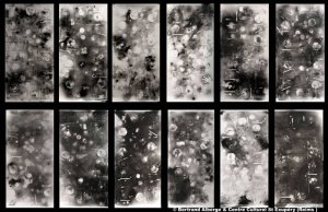 Les repas photogrammiquesDans ces représentations des Repas pour l’anniversaire du centre culturel Saint-Exupéry de Reims, les 120 convives sont invisibles. Ils sont hors-champ, au-delà du visible, telles les ombres projetées hors de la caverne de Platon. Seules leurs traces apparaissent sur les « nappes photographiques ». par Bertrand Alberge |