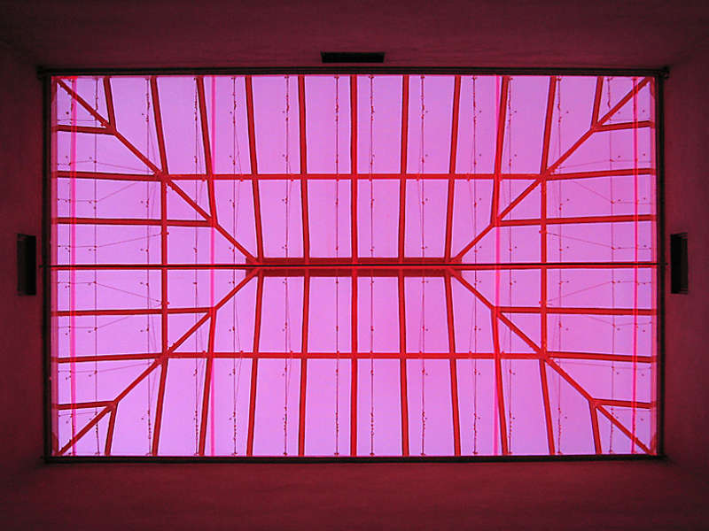 Observatorium (Museum), exhibited as part of a complex project at the Contemporary Art Center Luigi Pecci (2006) in dialogue with the Wall Drawing # 736 Rectangles of Color by Sol Lewitt, calls the viewer to interact entering physically in the work, using it as a device to choose the point of view from which he/she can observe the outside, allowing him/her to put to his/her own sight the frame in which eventually may focus the work of the American artist.