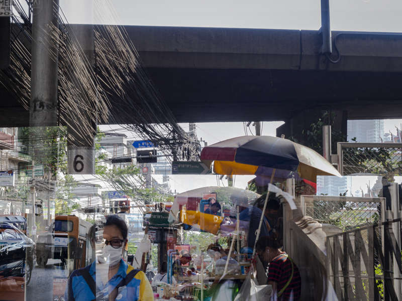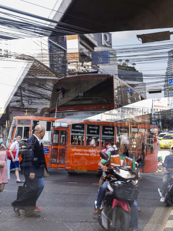 Le défi photographique à Bangkok c’est l’espace. Où que l’on se tourne, celui-ci est obstrué, fragmenté par les enseignes, les climatiseurs, les barrières, les poteaux, les câbles électriques. Il est difficilement lisible de prime abord.