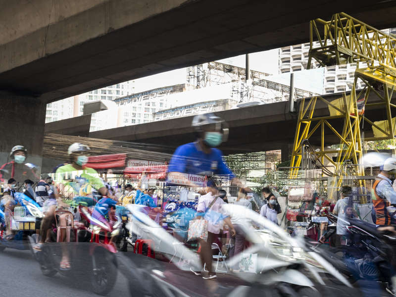 Je suis allée à Bangkok pour la première fois en 2017. Photographe urbaine je m’étais donné un défi : photographier une mégapole d’Asie à la densité et au rythme effréné, l’une de ces hypervilles dépassée par une démographie exponentielle, un développement hors de contrôle, un désastre environnemental. Le monde urbain du futur ? ou de la rupture ? La capitale thaïlandaise m’a rappelé cette phrase du Corbusier à propos de New York : un cataclysme au ralenti.