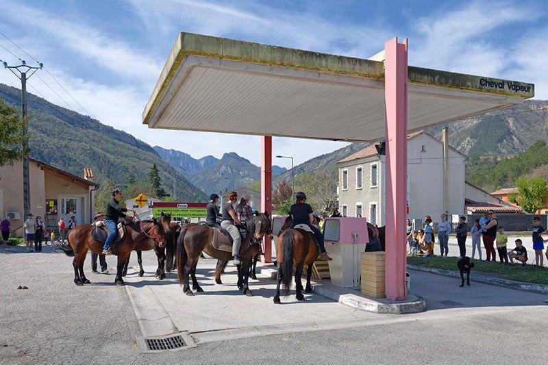 Des îles apparaissent dans les campagnes en bords des voies routières, restoroutes en puissance, ils attendent les chevaux.