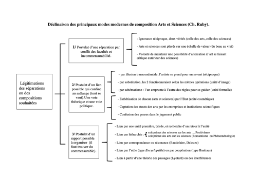 L’association des deux notions ou activités (arts et sciences) en archipel d’interférences, ou en réseau, doit en effet focaliser l’attention sur la conjonction de coordination, sa force et ses exigences, et garantir de ne pas tomber dans une simple addition ou pesée (un peu de… et un peu de…). C’est parce que nous avons abordé ces velléités de forger un tel archipel de cent façons différentes — avec des réseaux (TRAS, Universciences, CEA, Le Fresnoy…), face à des réussites, des échecs, des rapprochements vagues, des approches décoratives, des confusions entre science et technologie, etc. —, que nous avons appris à prendre de telles précautions avec ce qui se donne ordinairement pour A&S : outre des survivances de récits glorieux d’accords, des illustrations des sciences par les arts, un positivisme plaçant les sciences en juge de la valeur des arts, ou un romantisme dans lequel les arts jugeraient de la valeur des sciences.