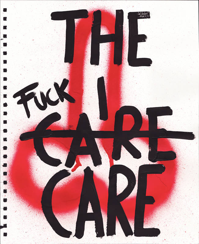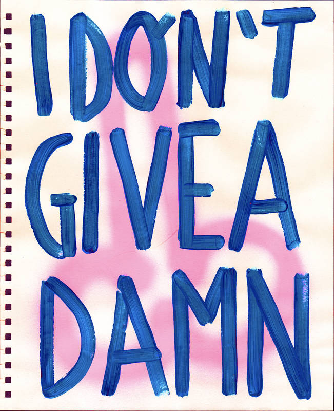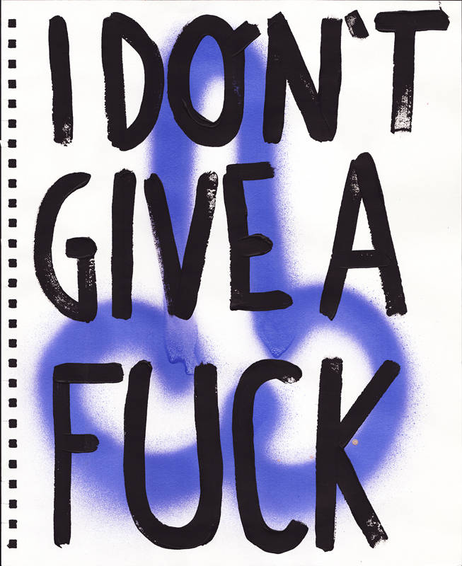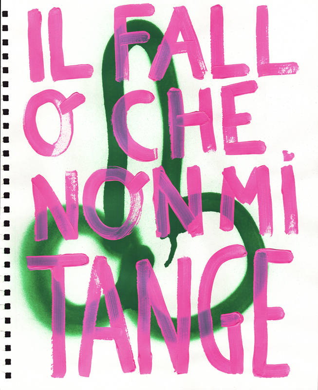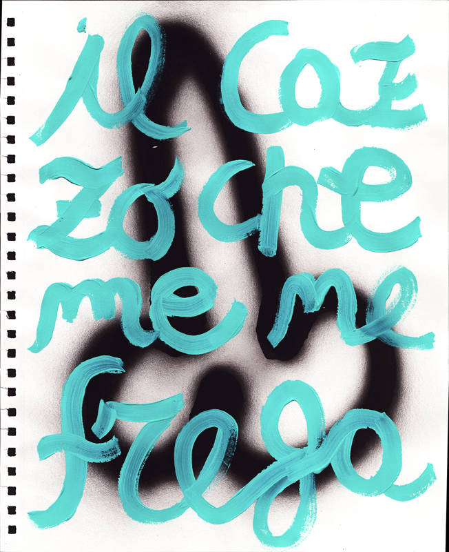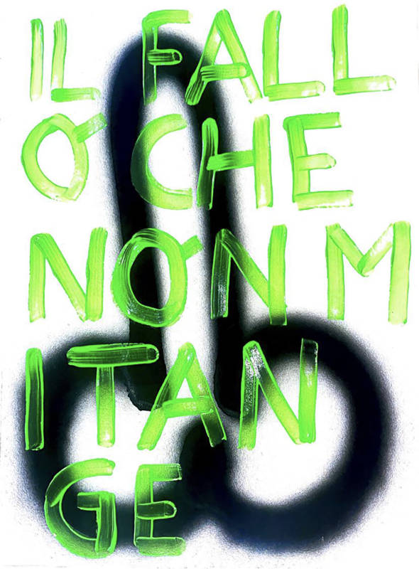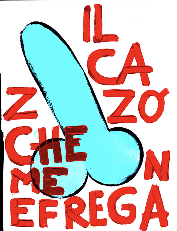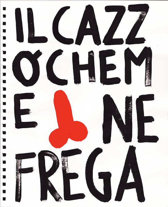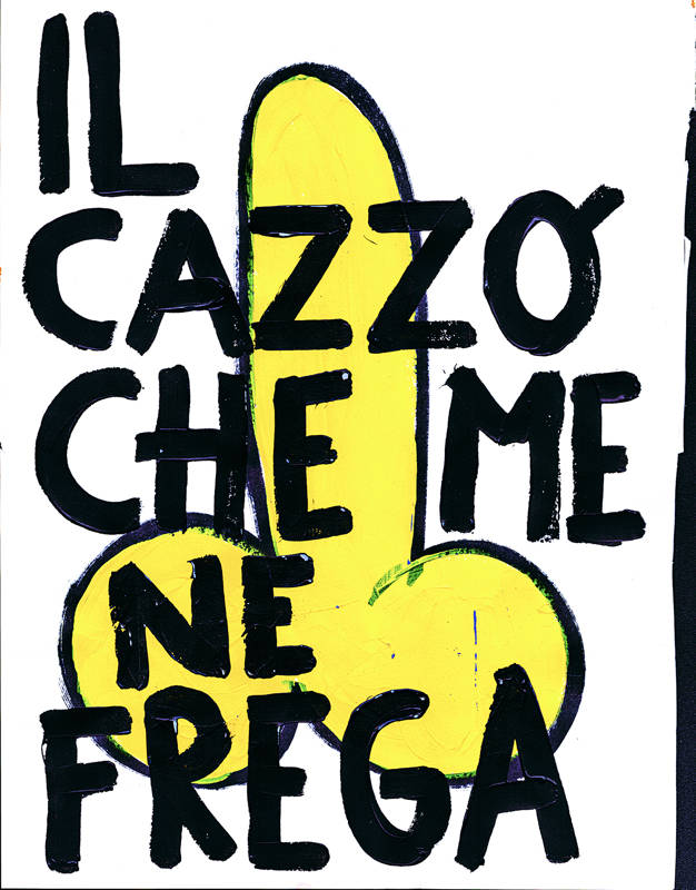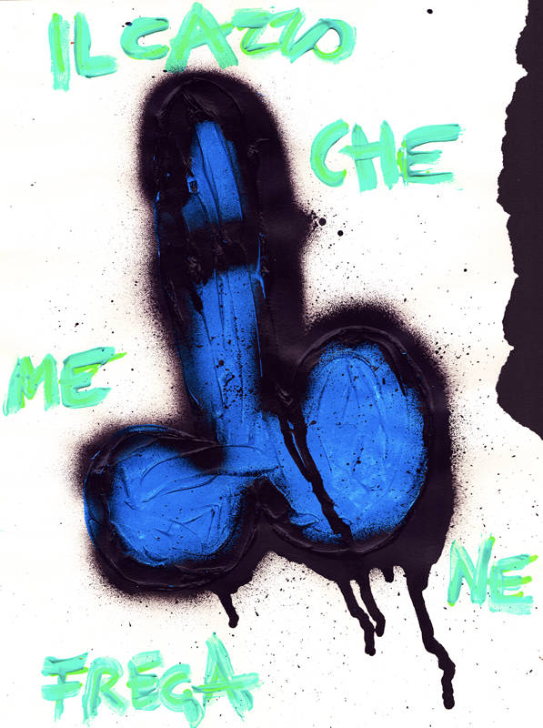 Le phallus, en plus d’être un appel à l’art de la rue, est un symbole puissant de ma terre napolitaine bien-aimée avec des histoires fascinantes. Dans l’Antiquité, le porte-bonheur napolitain était un phallus. Le phallus dessiné partout à Pompéi, et les vestales qui gardaient le phallus sacré. Une réflexion sur la nécessité de ne pas s’arrêter à l’apparence. L’inscription répétitive « Fuck I don’t care » est une exhortation qui m’a rappelé que je préférais m’aimer moi-même plutôt que de me rendre malade en essayant de plaire aux autres.