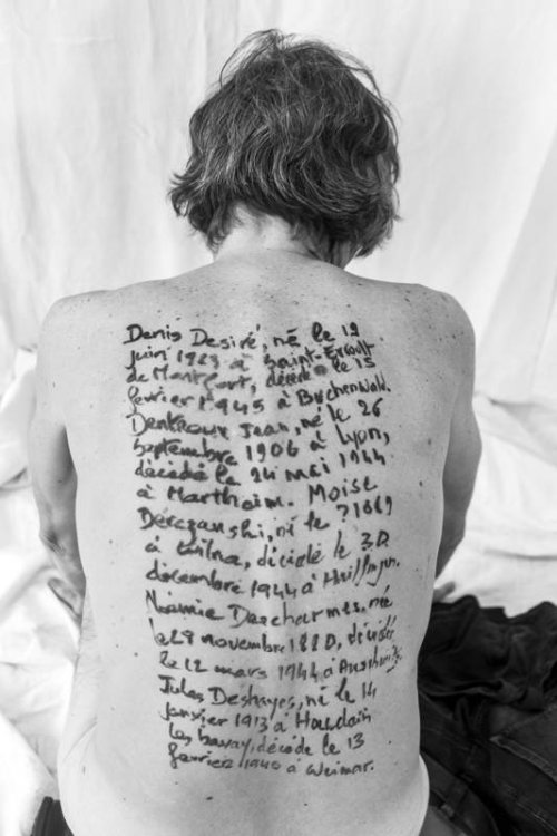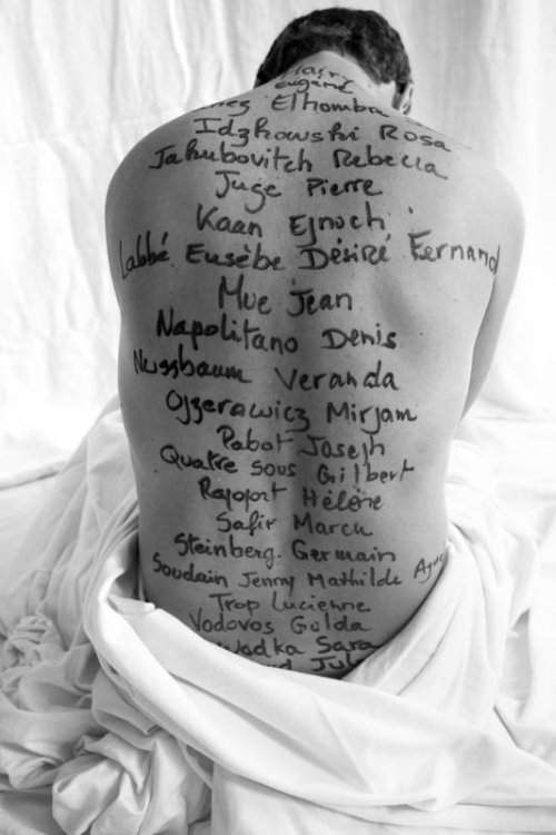 En inscrivant ces noms, effacés par la barbarie nazie, sur des corps bien vivants, nous cherchons à interroger le rapport intime que chacun entretient avec la mémoire de ces disparitions. Dire combien ce lien est encore vivant, personnel, profond. Et combien il continue de nous traverser, de nous transformer.