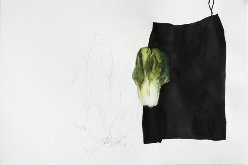 Frontispice : Corps, ombres, légumes, 2019. Aquarelle, mélange d’encres et carbone sur papier, 50x70cm