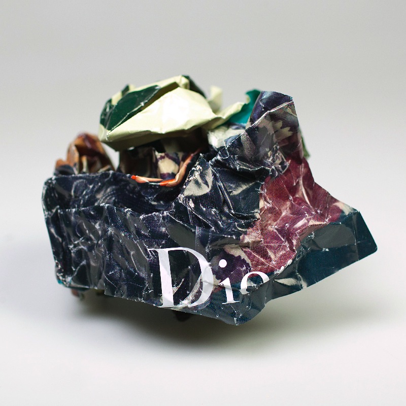 When a writer is dissatisfied with a manuscript, he or she may crumple writing paper up then throw it away. Considering a crumpling action, two meanings could be revealed. One is the negation of value or substance, while the other is hiding perspectives. A writer crumples up paper as a negative meaning. At that instant, flat surfaced writing paper is transformed into a three-dimensional structure and the texts on the paper are mixed, hiding its original meaning. Furthermore, leaflets, newspapers, banknotes, and so on around us normally have their own value as a piece of paper, as well as additional value from the prints and images printed on their surfaces.
