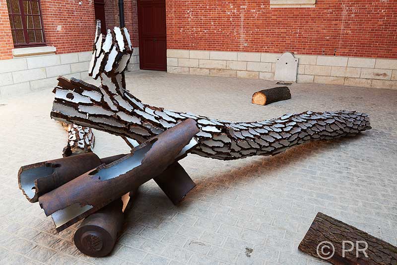 Dans le parc, Petroleum reversus I attire notre regard : Deux éléments couchés, en équilibre, provoquent une ambiguïté entre le matériau industriel et l’écorce d’un arbre. Marc Didou renverse l’intérieur vers l’extérieur et donne ainsi une autre histoire aux éléments qui ont subi l’érosion.