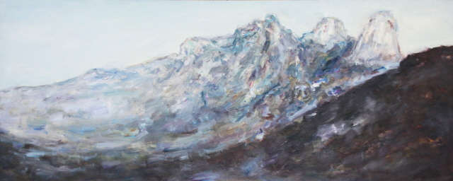 À travers les reflets des objets, le sujet essentiel de chacun de ces tableaux est en fait l’observation, permanente, de la vitalité du monde et de sa métamorphose en énergie. Les grands paysages de montagne, peints dans l’atelier de Séoul, incarnent cette quête par excellence. À la lisière de l’Abstraction, de part et d’autre d’une ligne d’horizon accidentée par les sommets, les mouvements atmosphériques prennent corps tandis les pans minéraux gagnent en légèreté. En haut comme en bas, animé par l’inlassable danse du pinceau et par la myriade des tons juxtaposés par touches, tout bruisse et dialogue. La rencontre de la terre et du ciel semble possible, tout comme celles de la densité avec l’apesanteur, du corps avec l’esprit, du présent avec le passé.
