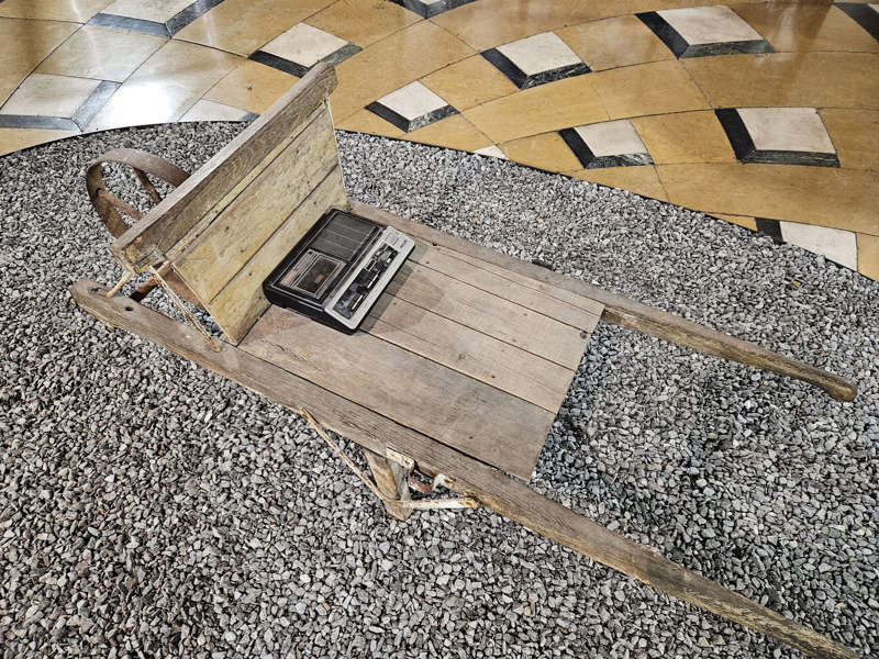 Image d’ouverture : Bernar Venet, Brouette et magnétophone utilisés pour la composition, Gravier, Goudron, 1961.