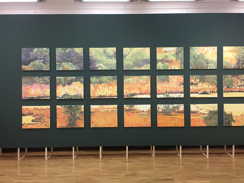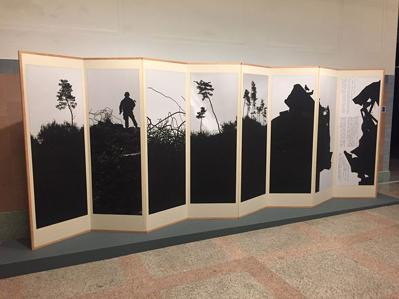 On the second floor, there is a room of paintings. The paintings are beautiful landscapes at first. The landscape paintings do not say anything but the grand beauty of nature. However, as the viewers easily “see” the invisible political and military presence that is hidden in these landscapes. The context enters into the conversation and changes the viewers’ perspective.