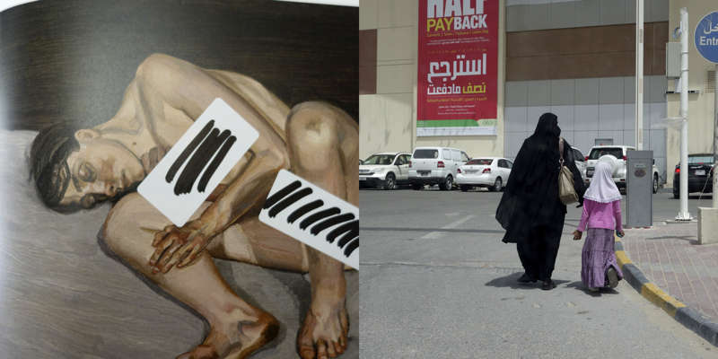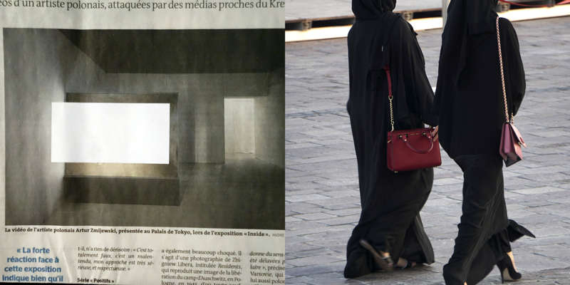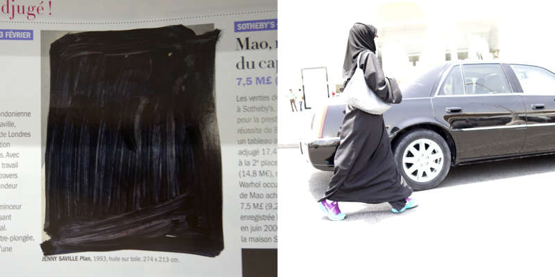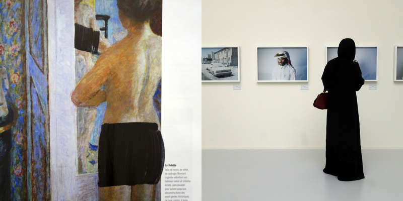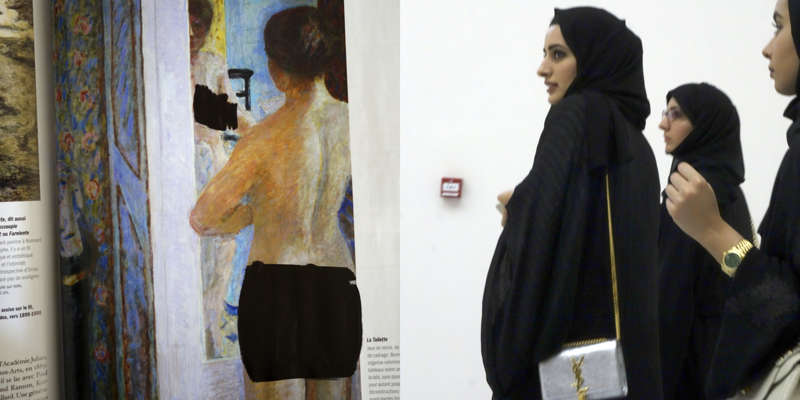 Il est facile, alors, de trouver, dans les publications accessibles à tous, ou parfois, à travers un passage en douane un peu serré, une application à cacher ce qui ne doit pas être porté à la vue publique. Les entre-jambes, les poitrines, les postérieurs, parfois le corps entier, s’il est trop charnu, charnel, sexué.