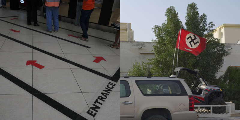 Où l’on apprend aussi que la réalité d’une partie du monde est totalement interdite (censuré ?), mais surtout et effectivement inconnue de notre côté. Le Qatar est un nœud, une charnière, le lieu de la frontière, le pays neutre du Milieu de l’Est. Il est le point de rencontre des deux ennemis du XXIe siècles, les impurs et les fanatiques. Les fiertés d’un côté sont les infamies de l’autre pan.