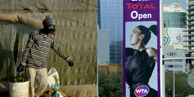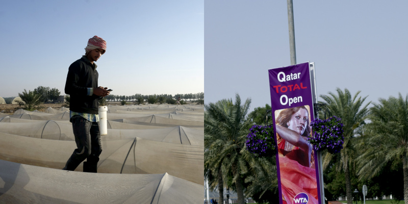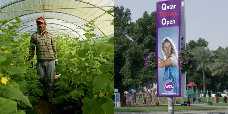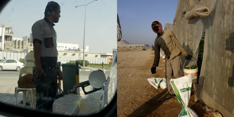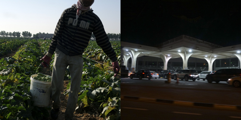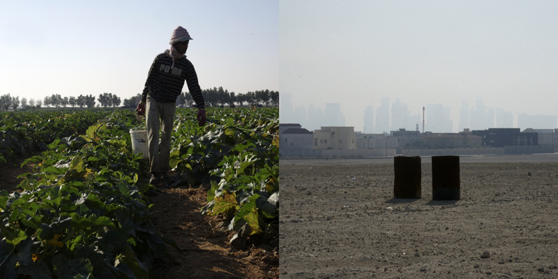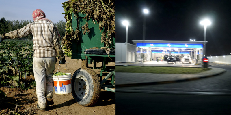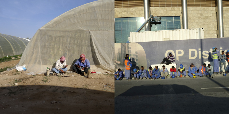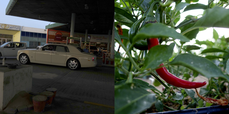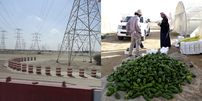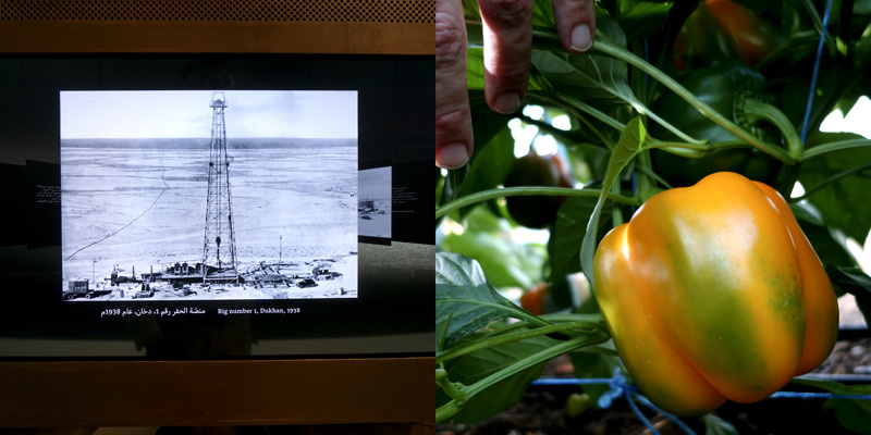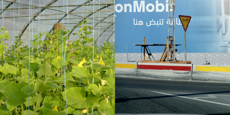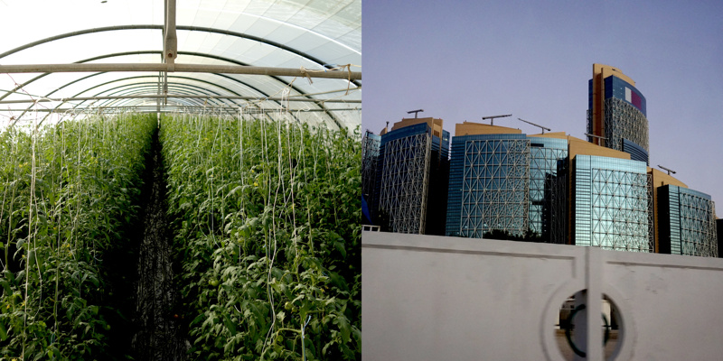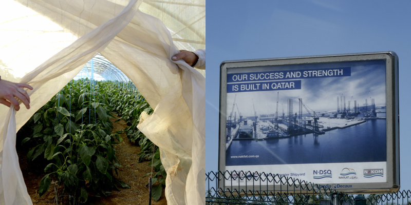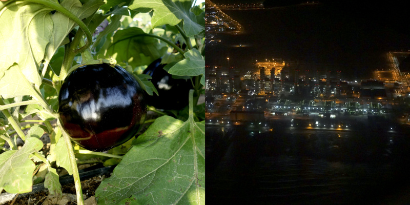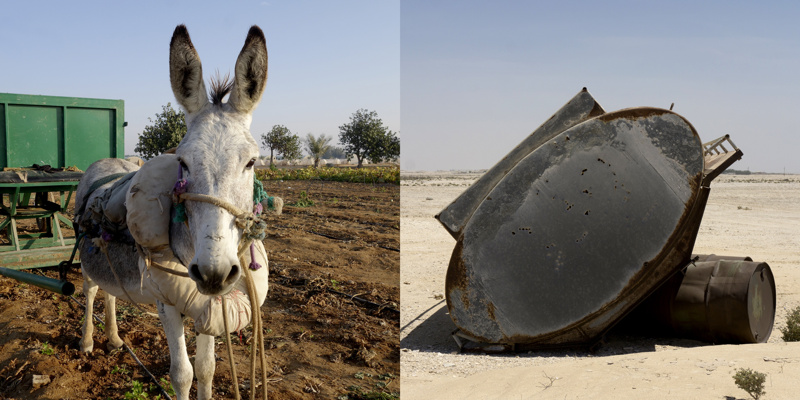 Longtemps, pendant quelques millénaires, des êtres ont vécu sur une petite presqu’île désertique, la plupart de l’année sous un climat à la limite du vivable, stérile, adaptés. Pourtant, évidemment, il y a une petite vallée, au dessus peut-être de la seule nappe phréatique d’eau utilisable pour organiser un peu d’agriculture. Trop peu productive, évidemment, mais suffisante pour quelques milliers d’individus, voire quelques dizaines de milliers, certainement pas plus. Les agréments modernes, massifs, que nous connaissons sur nos terres n’ont pas été choisis ici. La production agricole est à main d’homme, à dos d’âne. Il y a bien sûr des évolutions mécaniques, réfléchies, modernes, des serres protègent des rayons solaires et aident à la conservation de l’humidité, un réseau d’irrigation en goutte à goutte, attentif, économe, responsable, qui renforcent l’attention écologique à cette fragile économie. La production locale est presque accessoire aujourd’hui, tant elle ne peut nourrir qu’une infime partie des habitants, inutile.