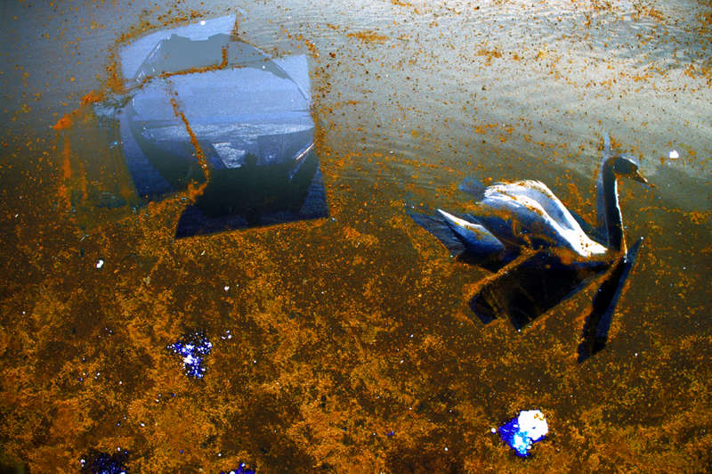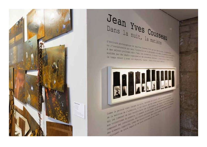 L’écriture photographique de Jean-Yves Cousseau n’est pas tant dans le sujet, la représentation ou l’instantanéité que dans l’altération de la photographie elle-même. En soumettant sa photographie à des séjours prolongés dans l’eau, aux intempéries, la faisant virer d’états en états successifs, modifiée par des dépôts organiques et des phénomènes chimiques, il donne à voir le temps à l’œuvre : le temps venant y poser son empreinte, charger l’œuvre d’une nouvelle mémoire.