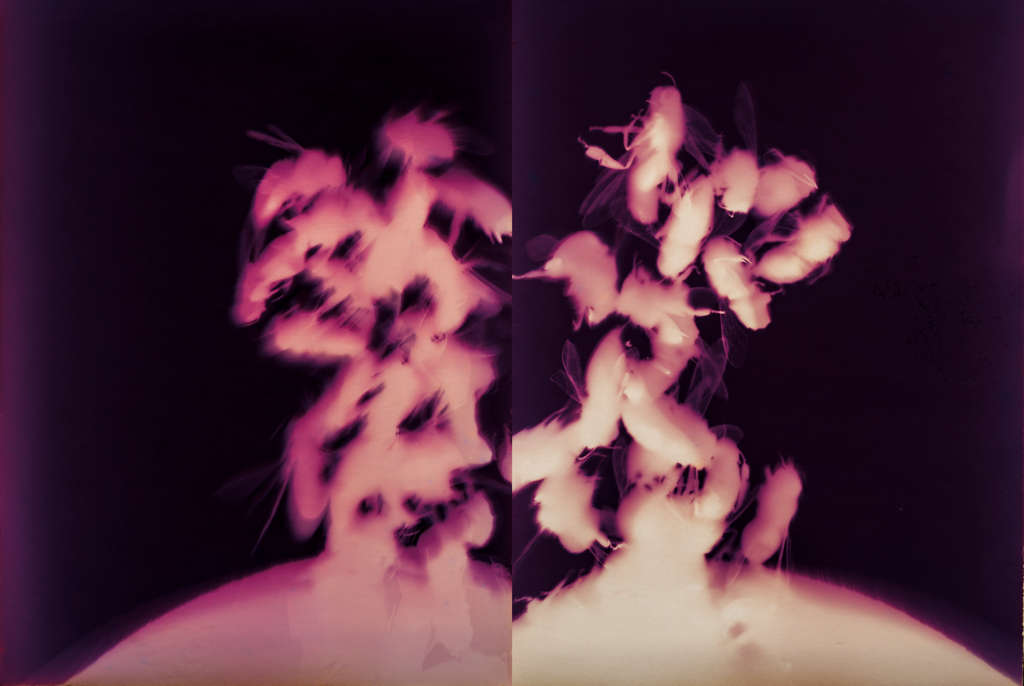 Un peu comme Armand Gatti le fait avec les mots, Olivier fabrique des images quantiques qui ont la vitesse et la fugacité d’une connexion entre neurones. Il indique sans les capter les étincelles, les traces fugitives d’un geste qu’aucun cadre ne stoppe, qu’aucun regard ne piège. Elles sont toujours, déjà, ailleurs, ou elles ne sont pas encore là. C’est de la photographie sans appareil, oui, des photogrammes comme William Henry Fox Talbot ou Man Ray, mais c’est aussi et surtout, si l’on s’en tient au verbe poeïen, de la poésie sans les mots. Ses images lui échappent car elles ne sont pas d’accord pour n’être que des images, elles qui vivent en-deçà et au-delà de la rétine, à l’intérieur même du cerveau, où elles précèdent toute pensée et tout ressenti sans jamais s’arrêter au sens qu’on veut fixer. Elles sont jeunes encore, nouvelles nées, instables, électriques et non domestiquées, parcourues de frissons, hors cadre, amicales mais presque sauvages, chargées de la puissance du devenir, en germe mais déjà très actives, en route vers leurs possibles, la trace dans l’air d’une flèche plus que la flèche elle-même, comme certains dessins sur les parois des grottes. Le souvenir instantané, l’énergie pure, un élan sans fin vers un monde aux arborescences si complexes qu’on dirait qu’elles ne s’arrêtent jamais. Une image « à l’état naissant » comme l’oxygène des physiciens. Ces images oxymoriques et facétieuses suggèrent peut-être quelque chose, qu’elles balbutient minutieusement, comme un infini en mouvement, si c’est possible, dont on soupçonne l’existence mais qu’on sait ne pouvoir nommer. Elles emmènent l’esprit vers un lieu qui ne peut se dire, qui n’est jamais ça ni autre chose, comme l’écrivain cherche et creuse entre les mots, entre les lignes et les concepts, en envoyant valser et s’entrechoquer vocables et rythmes pour que surgisse l’indicible, ce qui le meut au fond de lui. Le permanent et l’éphémère ne font qu’un, l’immobilité contient le mouvement, le mouvement recèle l’immobilité. Sans que l’on puisse savoir comment ce langage se fraye un chemin jusqu’à nous, parvient à nous parler en éveillant ce qu’on laisse en sommeil. Ce que l’on appelle art. Le langage dont se sert un homme pour dire aux autres ce qu’il est impossible de dire.