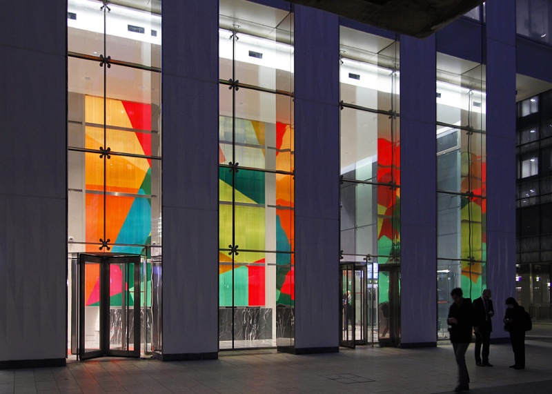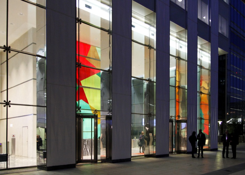 (Dé)construction colorée est à l’échelle d’un quartier comme celui de la Défense un geste symbolique. Le dessin de la tour, qui fonctionne a priori par succession de plans horizontaux, est ici renversé sur un axe vertical.