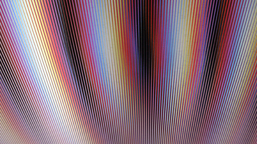 Scruter les créations de la série Meta-Aura revient inévitablement à se perdre en leur surface tant nos regards inassouvis, passant alternativement des ombres aux lumières, jamais ne se figent. Ces impressions cristallisent les obsessions de l’artiste alliant la simplicité d’une forme à la radicalité du processus, répétant ses lignes-courbes à des niveaux de détails à la limite du perceptible. Mais aussi, avec un tel titre, Pascal Dombis se réfère à la notion d’Aura chère à Walter Benjamin. Le théoricien n’envisageant l’œuvre d’art qu’au travers de « l’unicité de son existence au lieu où elle se trouve [4] ». Bien que le digital soit son médium de prédilection et sachant son extrême reproductibilité, les œuvres de Pascal Dombis sont uniques, parce qu’elles sont issues de processus génératifs pouvant en « inventer » à l’infini. Et c’est le choix de l’artiste qui fait l’unicité des œuvres dans l’instant même où, au travers des matériaux les produisant, elles se révèlent au monde.