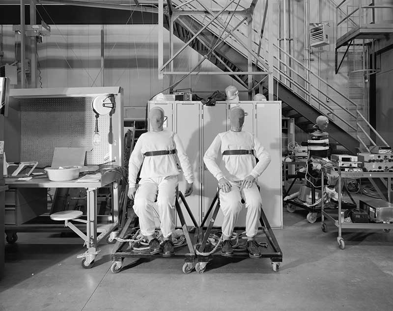 Lynne Cohen (CA, 1944 – 2014) décède en 2014 à Montréal, au Canada. Elle laisse une œuvre et une archive particulièrement homogène : pendant plus de quatre décennies, elle photographie exclusivement des intérieurs. Initialement des pièces comme des salons, des salles de réception et des instituts de beauté, puis des lieux de plus en plus chargés politiquement comme des installations militaires et des laboratoires. Chaque cliché est empreint d’une connotation légèrement absurde et surréaliste, qui fait la part belle à l’obsession humaine de contrôle et de compréhension.