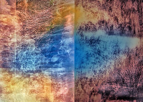 Il y a deux ans, j’ai également commencé à utiliser une application embarquée dans mon téléphone afin de modifier de différentes manières mes images avec l’idée de pouvoir superposer des calques mais aussi de proposer des matières colorées et des filtres.