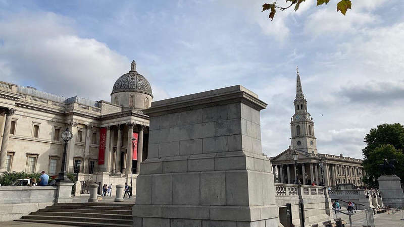 Image d’introduction : Londres, Trafalgar Square, le Quatrième socle, vide, proposé annuellement à des artistes
