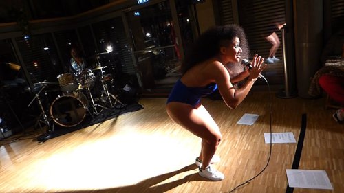 C’était une première et je suis toujours contente, émue. Surtout à Paris. C’est toujours chouette de performer à Paris parce qu’on a accès à un autre public qu’en Martinique, et puis pour les artistes, Paris c’est comme Berlin ou New York, tu as toujours ce fantasme de performer à Paris. Et ici, au Carreau parce que Sandrina Martins, la directrice, c’est quelqu’un que j’aime particulièrement, qui m’avait accueillie pour I’m a Bruja, pour leur festival Everybody, et le fait de me retrouver après ici dans le bar, ça me permet de sentir le lieu, l’espace. A un moment donné, je ne sais pas si tu te rappelles, pendant la performance je dis « taking care of space, taking care of nature, taking care of oneself and others, is inextricabilly linked to taking care of history », et à chaque fois que je dis taking care of space, je fais référence à cet espace qui est ouvert sur les arbres, un espace luxueux, qu’on n’a pas en Martinique. Je considère toujours comme un honneur, d’être là et de venir performer, même si c’est devant trente, quarante spectateurs. Je ne suis pas à l’Olympia mais j’ai cette sensation que c’est un privilège, de me sentir privilégiée.