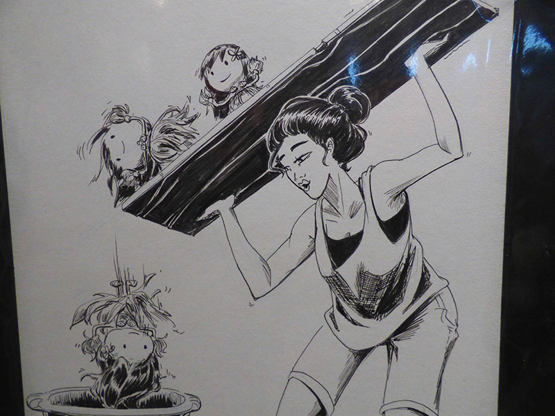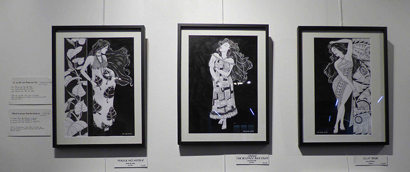 Eh bien je suis perdue. Parce que c’est la fin, il nous reste une dernière semaine, on doit commencer à tout ranger, et puis j’ai envie de profiter de ces derniers instants pour visiter d’autres expositions, voir d’autres musées. Il y en a beaucoup que j’avais envie de voir et que je n’ai pas eu l’occasion de visiter parce que j’ai beaucoup bossé sur mon projet personnel, et je me suis beaucoup déplacée aussi pour rencontrer des auteurs, assister à des conférences, voir plein d’expositions au niveau de tout ce qui est BD et science-fiction… Mon art a été bien nourri. J’ai eu l’occasion de bosser sur des illustrations qui ont beaucoup résonnées en moi, et grâce aux discussions qu’on a eu avec les filles autour de la femme, de l’image qu’on voyait d’elle, une image qu’on a eu envie de changer, ça m’a donné envie de travailler sur ça, et de réaliser des planches sur ce thème de la femme telle qu’on veut la voir maintenant.