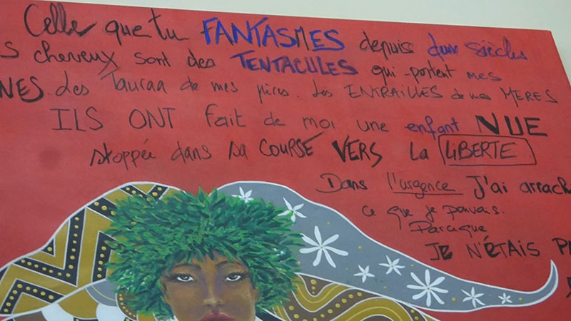 Titaua Peu : J’ai fais un texte inédit d’une page et demi, donc je n’ai pas pu le mettre en entier sur le tableau.