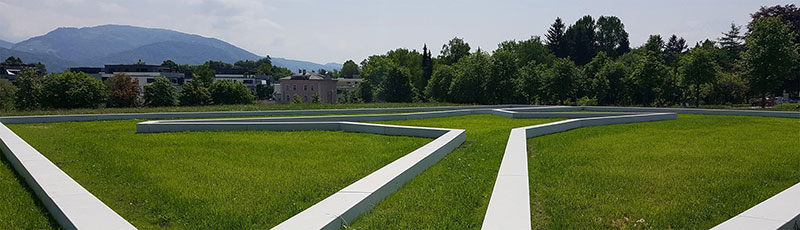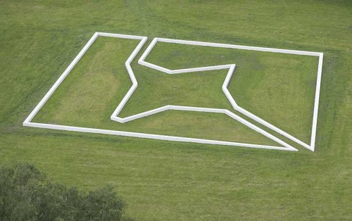 Comme si un botaniste auscultait soudain les étoiles de la même manière qu’il le ferait des spécimens rencontrés dans un brin de forêt. Down to the ground a fait atterrir une étoile dans un grand parc de Salzburg, pour le Krauthugel. Elle se dessine sobrement à fleur de terre avec un périmètre d’espace qu’elle a emporté avec elle lors de sa descente. Ce « land drawing », comme le définit l’artiste, ne dépasse pas les 40 cm de hauteur et se déploie sur 40x45 mètres.