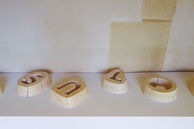 L’homme ne vit pas seulement de pain #2, 2012-2013, Article 13 de la Déclaration Universelle des Droits de l’Homme gravé à la main dans des savons de Marseille, 81 x 253,5 x 4 cm ; œuvre réalisée dans le cadre de Marseille Capitale Européenne de la culture, 2013, Ateliers de l’EuroMéditerranée. © Taysir Batniji, Courtesy galeries Sfeir-Semler et Eric Dupont.